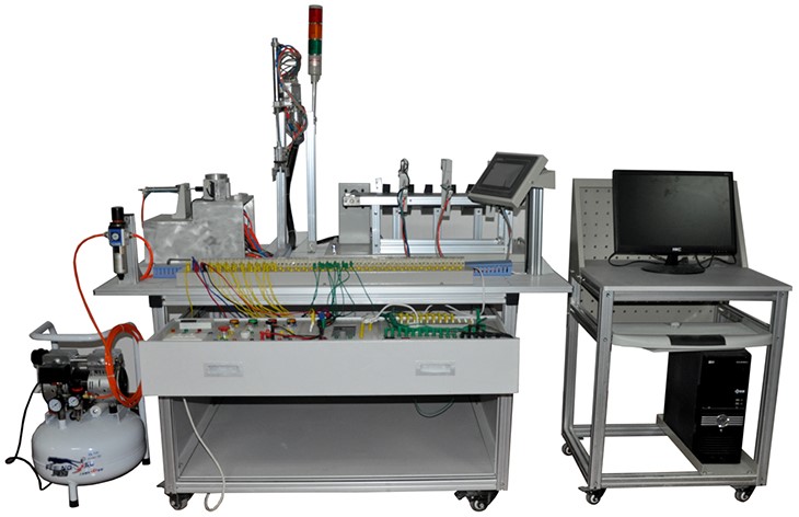 機電一體化實訓設備、機電一體化實訓裝置由由鋁合金導軌式實訓臺、典型的機電一體化設備的機械部件、PLC模塊、變頻器模塊、按鈕模塊、電源模塊、模擬生產(chǎn)設備實訓模塊、接線端子排和各種傳感器、計算機等組成。整體結構采用開放式和拆裝式,實訓裝置用于機械部件組裝,可根據(jù)現(xiàn)有的機械部件組裝生產(chǎn)設備,也可添加機械部件組裝其他生產(chǎn)設備,使整個裝置能夠靈活的按教學或競賽要求組裝具有生產(chǎn)功能的機電一體化設備。模塊采用標準結構和抽屜式模塊放置架,互換性強;同時還要求具有可拓展功能,可以組成更加大型的生產(chǎn)模擬系統(tǒng),以配合各個用戶學校不同層次,不同專業(yè)的教學及培訓要求。